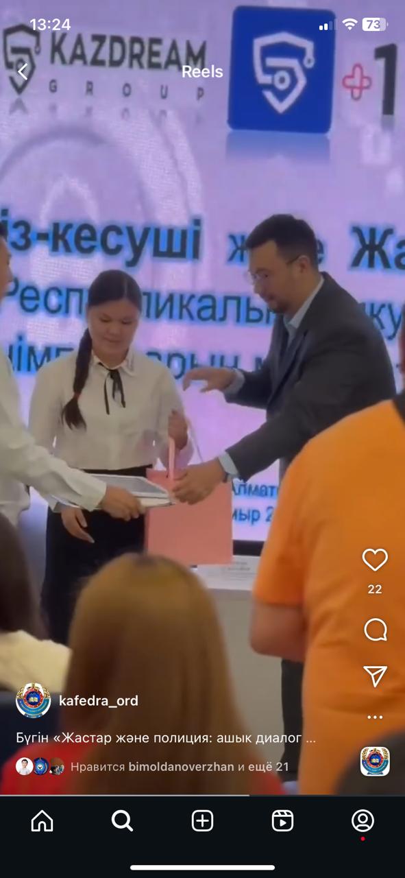 2025 жылдың 02 мамыры күні Қазақстан Республикасы ІІМ Мақан Есболатов атындағы Алматы академиясы ұйымдастырған «Жастар және полиция: ашық диолог және әріптестік» жастар форумының аясында “Жас із-кесуші” республикалық байқауының жеңімпаздары марапатталды, олар: